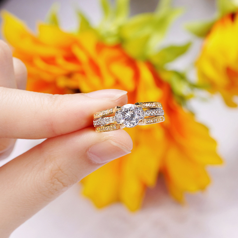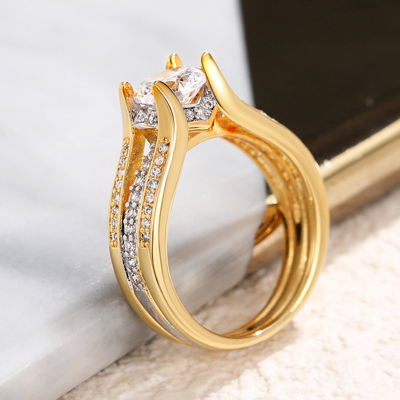 Available in a striking gold color, this ring is perfect for any occasion, whether you're dressing up for a special event or adding a touch of glamour to your everyday look. With sizes ranging from 6 to 10, there's a perfect fit for everyone. Each ring weighs approximately 4.7g, making it lightweight and comfortable to wear all day long.